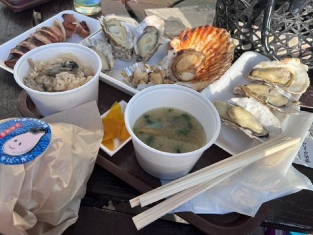 外のテラスと2階には食事席があり鮮度抜群のネタが味わえる寿司や豪快な海鮮丼、松島かきバーガーが人気です。また併設している「焼がきハウス」では1年中かきの食べ放題ができます。