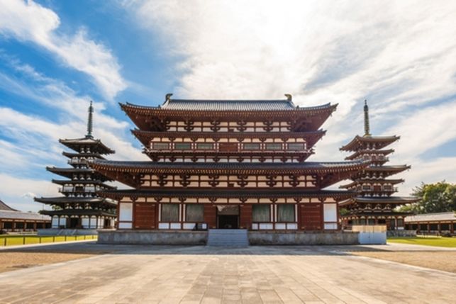 680年に天武天皇が皇后の病気平癒を祈願して創建された寺院です。718年に現在の地になりました。「東塔」と「東院堂」は国宝に指定されています。「東塔」は創建時のまま唯一現存する建物で六重の塔に見えますが実際には三重の塔です。「東院堂」は日本最古の禅堂といわれており歴史があります。