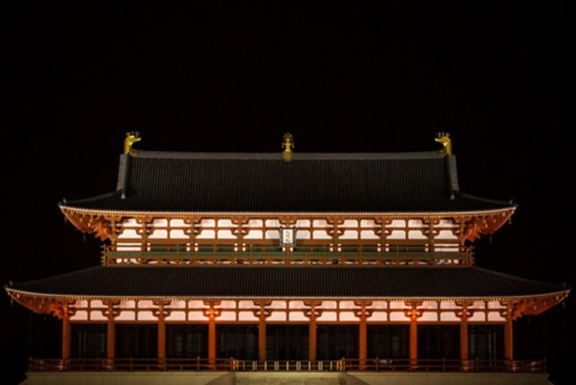 710年に藤原京より都を移された平城京の中心であった「平城宮」の宮跡です。1998年には世界遺産に登録されています。「第一次大極殿」は天皇の即位式などの儀式が行われた建物です。「朱雀門ひろば」には展望デッキ、レンタサイクル、レストランなどもあります。